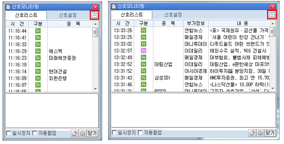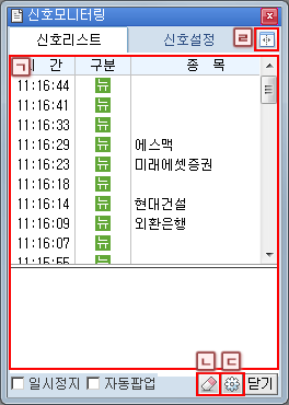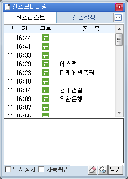 ¹öưÀ» Ŭ¸¯ÇÏ¸é ¡®½ÅÈ£¸ð´ÏÅ͸µ¡¯ ȸéÀÌ ÆË¾÷ µÇ¸ç, Á¾¸ñÀÇ °¢ Á¾ ´º½º¿Í